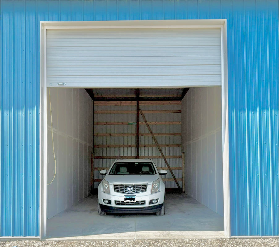 We currently have two buildings completed each building measures 40ft x 80ft with 16ft ceilings. Each building is divided into 5 individual bays measuring 40ft x 16ft, each bay has a 12ft x 14ft overhead door for access.